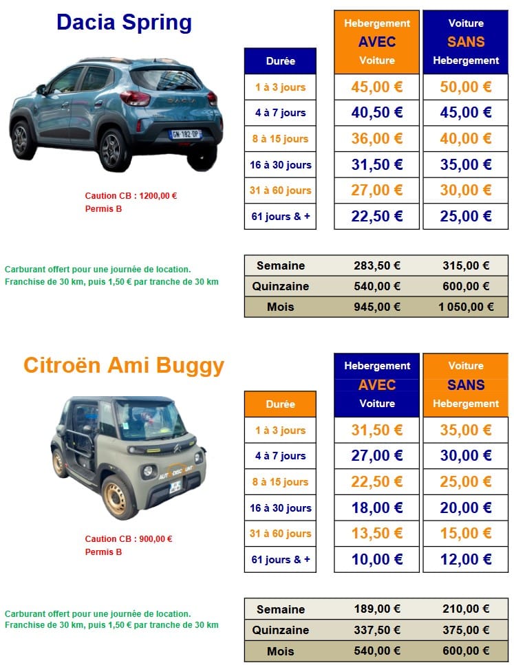 Tarifs location de voiture